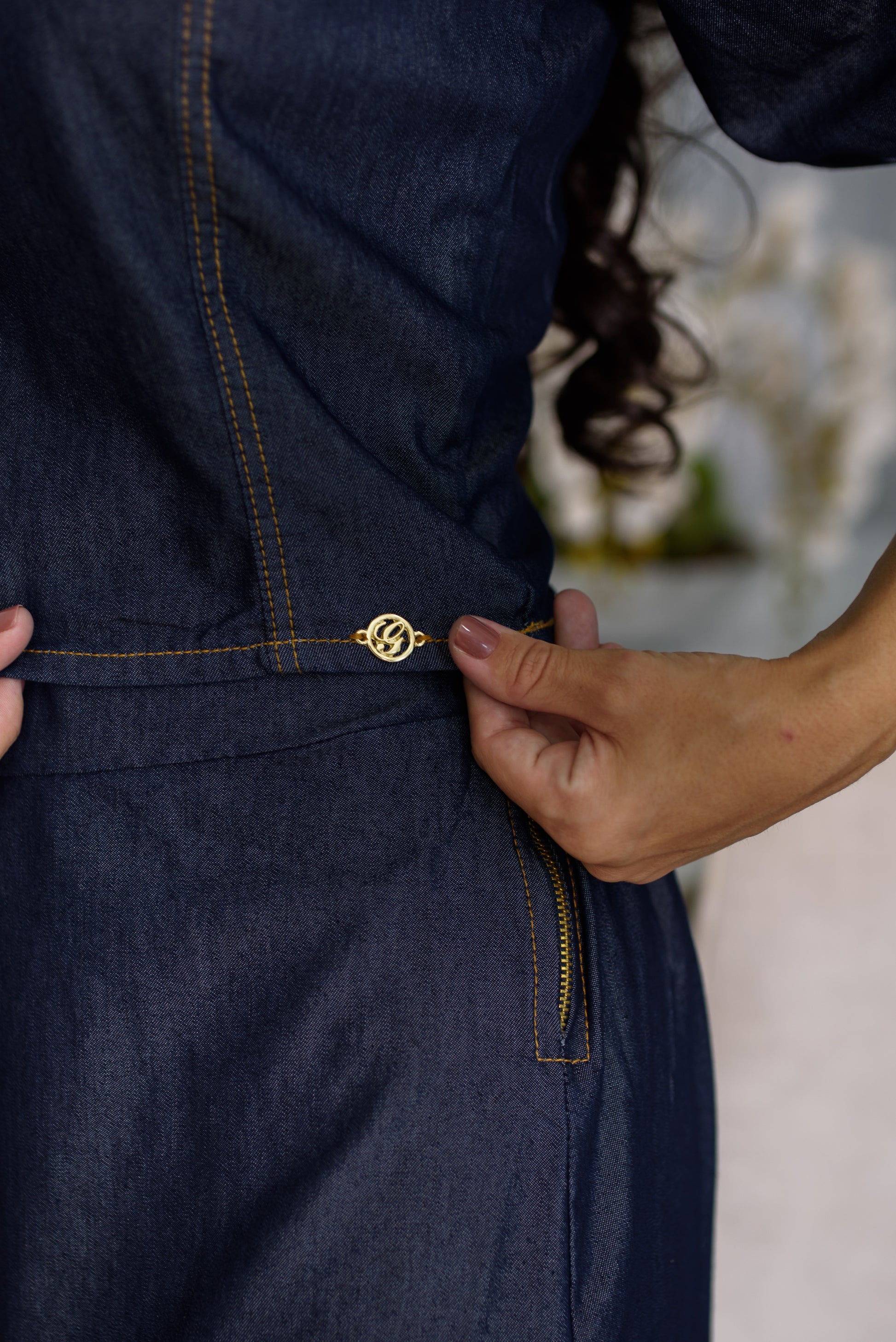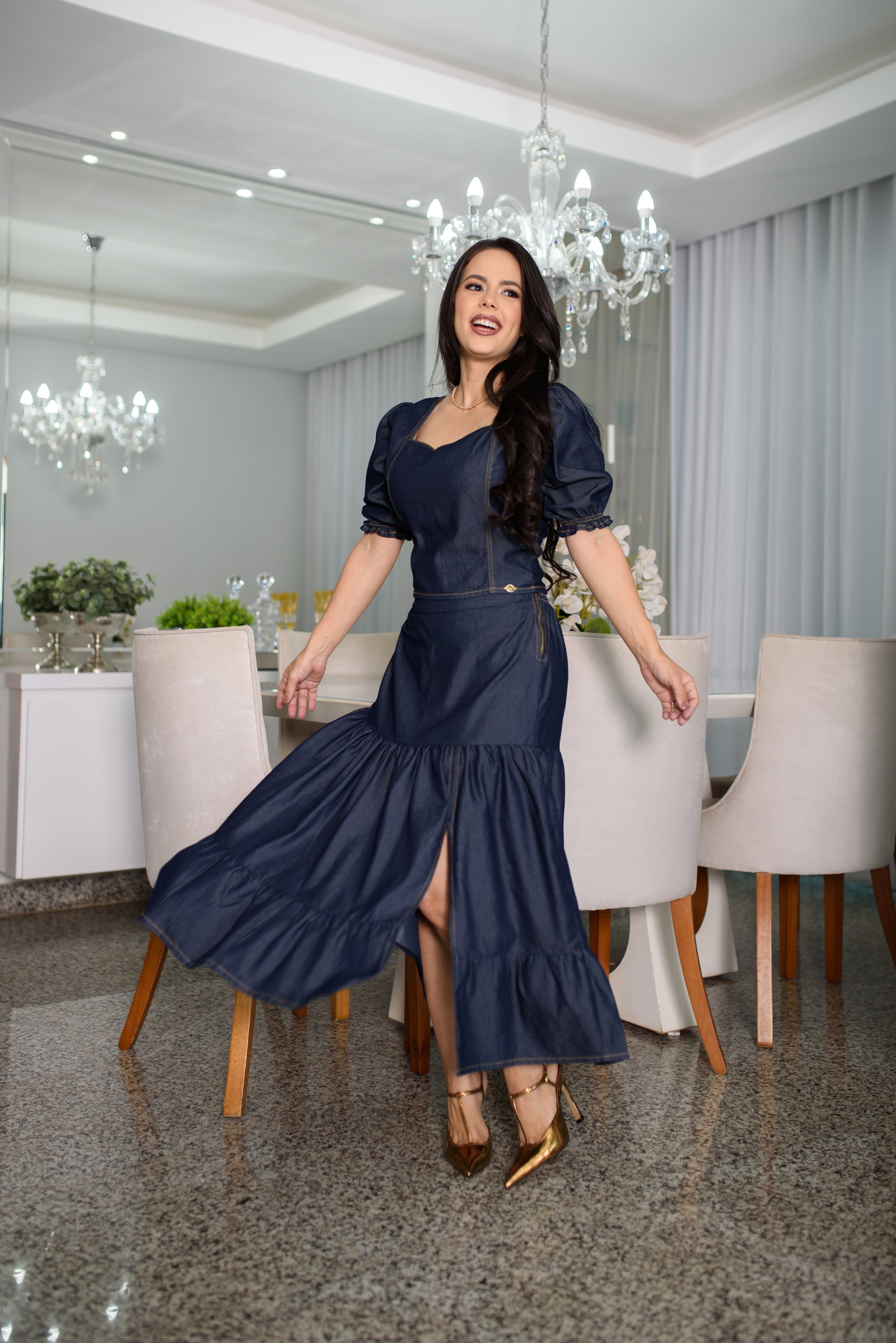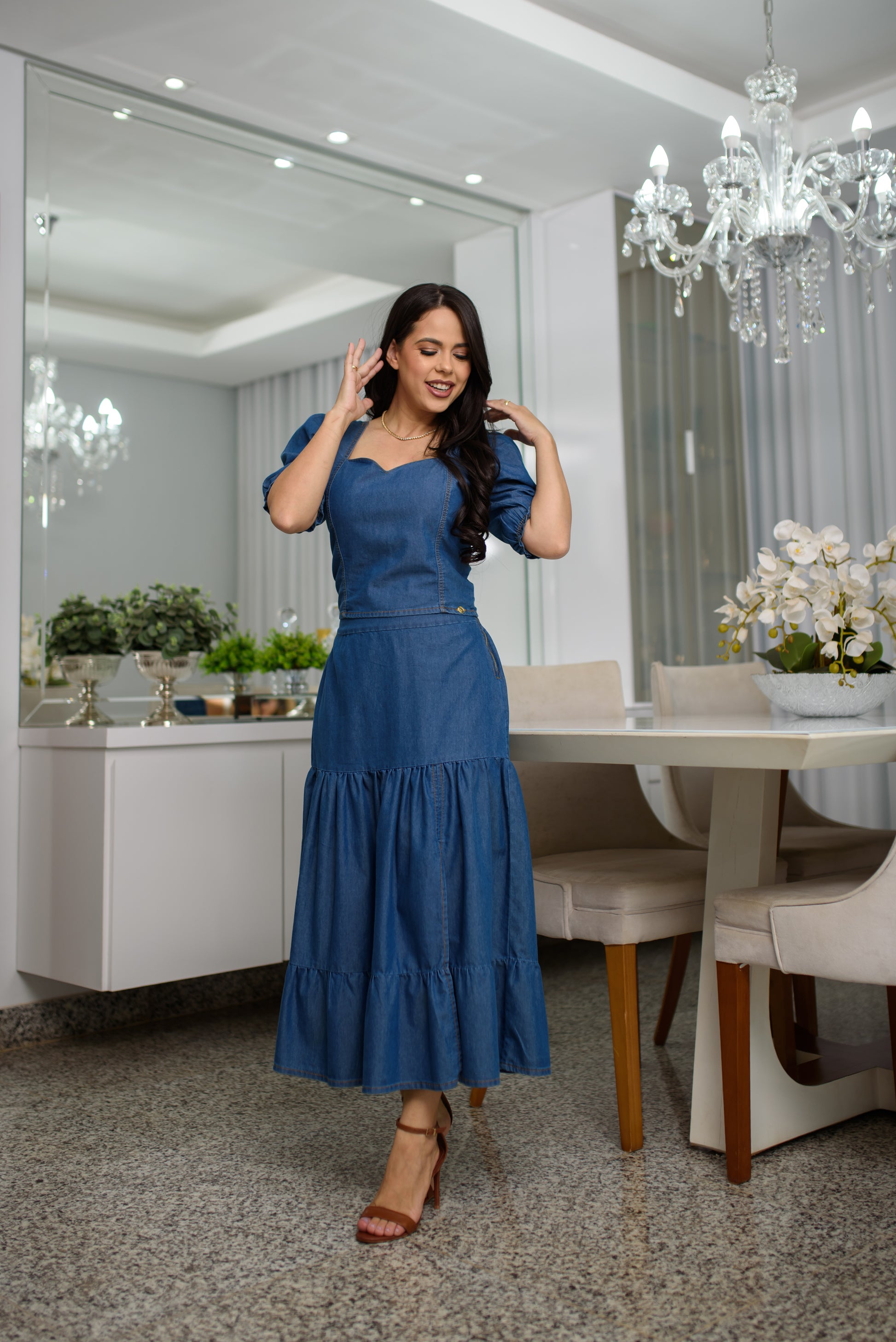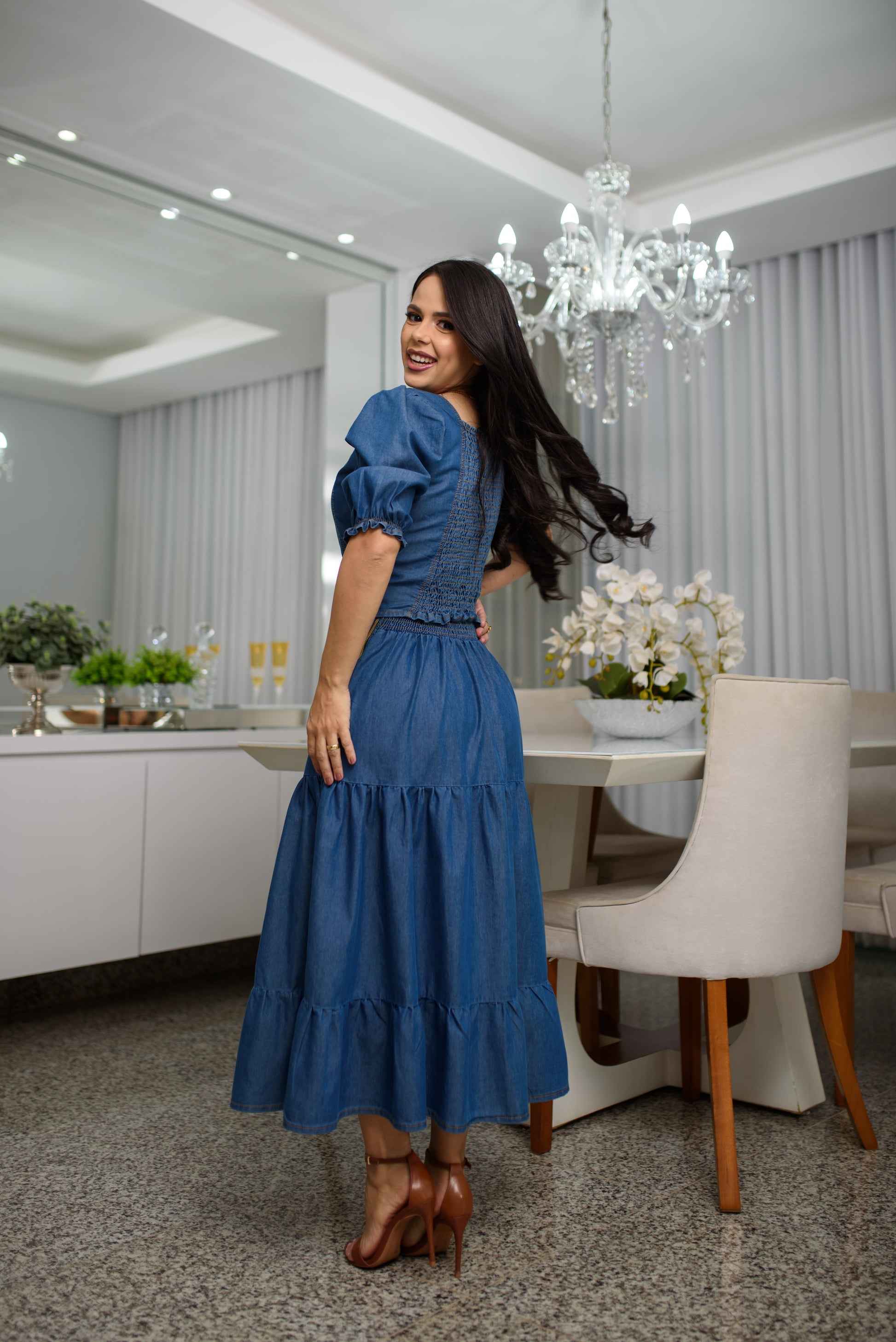 O conjunto jeans leve da Gênesis Moda Evangélica é a escolha ideal para quem busca modéstia, estilo e versatilidade. Confeccionado em jeans macio e fresco, traz um cropped com lastex nas costas para um ajuste perfeito e confortável. A saia três marias oferece movimento e feminilidade, enquanto a fenda lateral discreta acrescenta um toque moderno sem abrir mão da modéstia cristã. Ideal para cultos, eventos especiais ou passeios, é uma peça coringa para o guarda-roupa da mulher evangélica que ama se vestir bem.